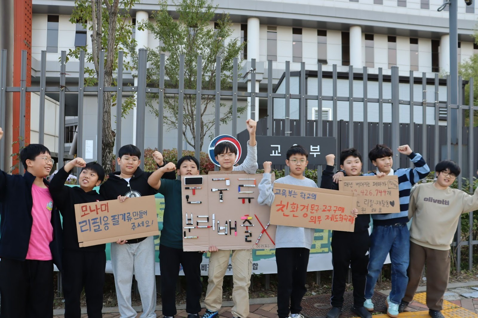 링 크ㅣ [보도자료] 초등학교 학생들이 교육부 앞에 모은 700개의 보드마카