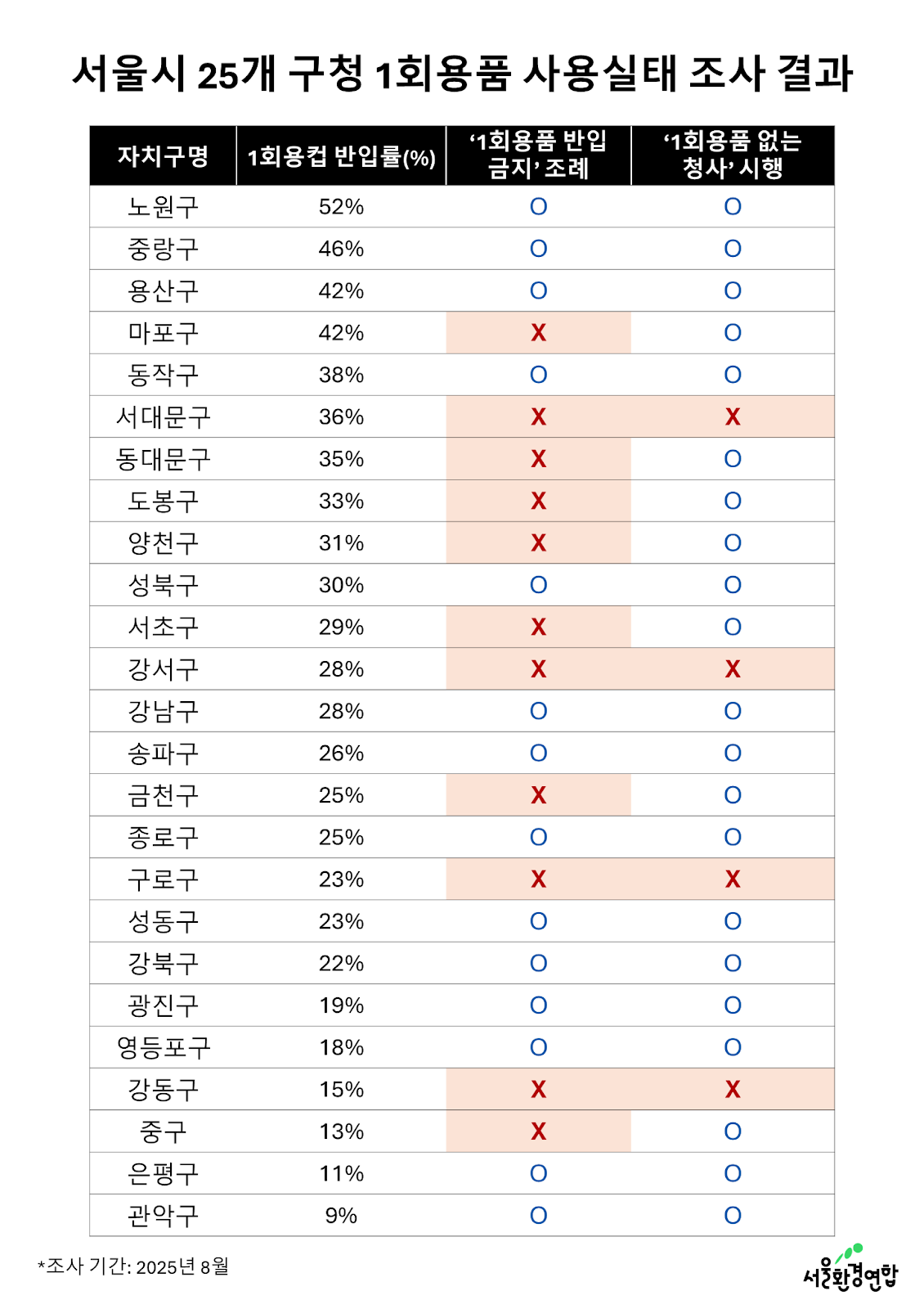 [별첨 1.] 요약표_서울시 25개 구청 1회용품 사용실태 결과