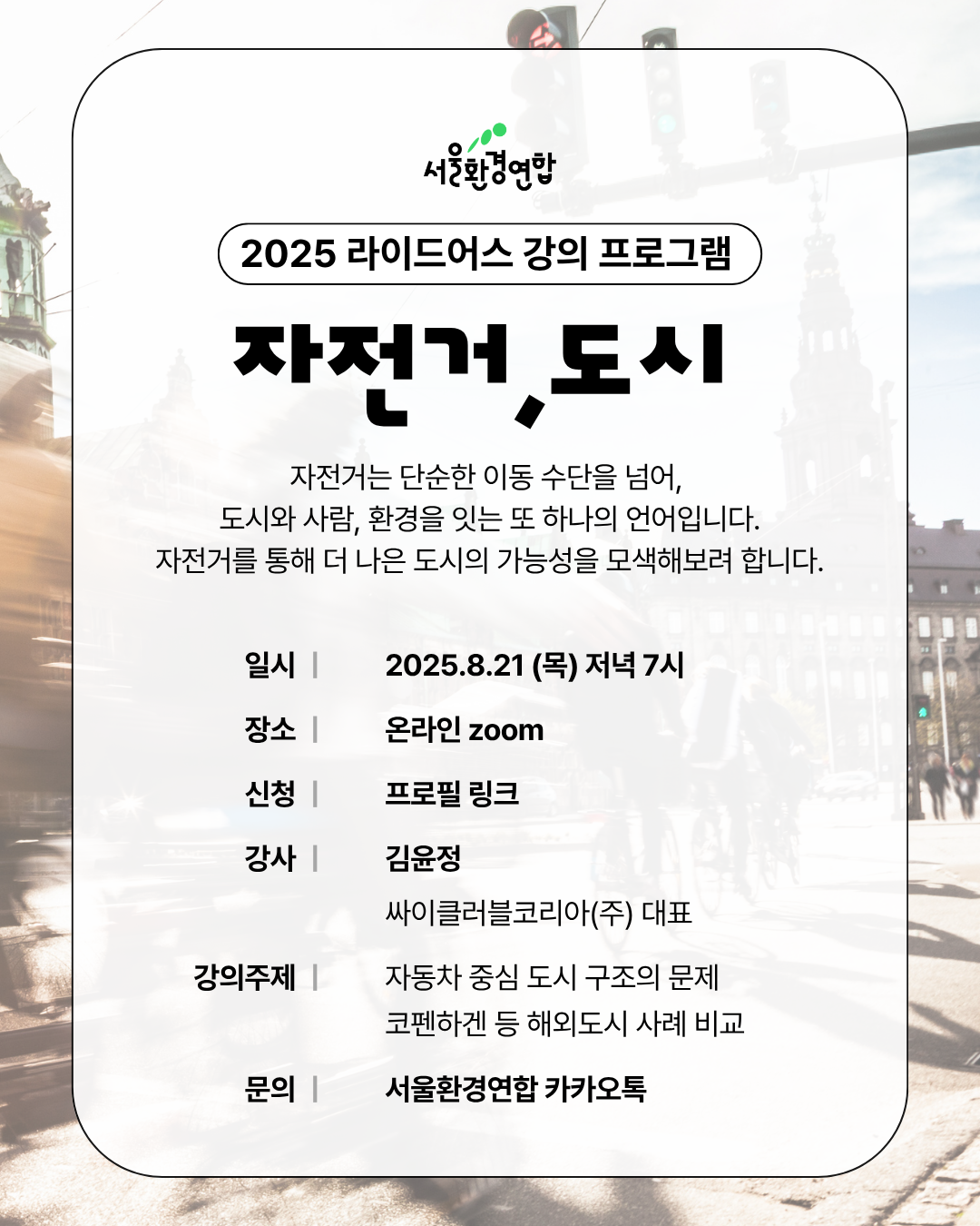 [모집·진행 종료]라이드어스 강의 프로그램 '자전거, 도시' 참여자 모집