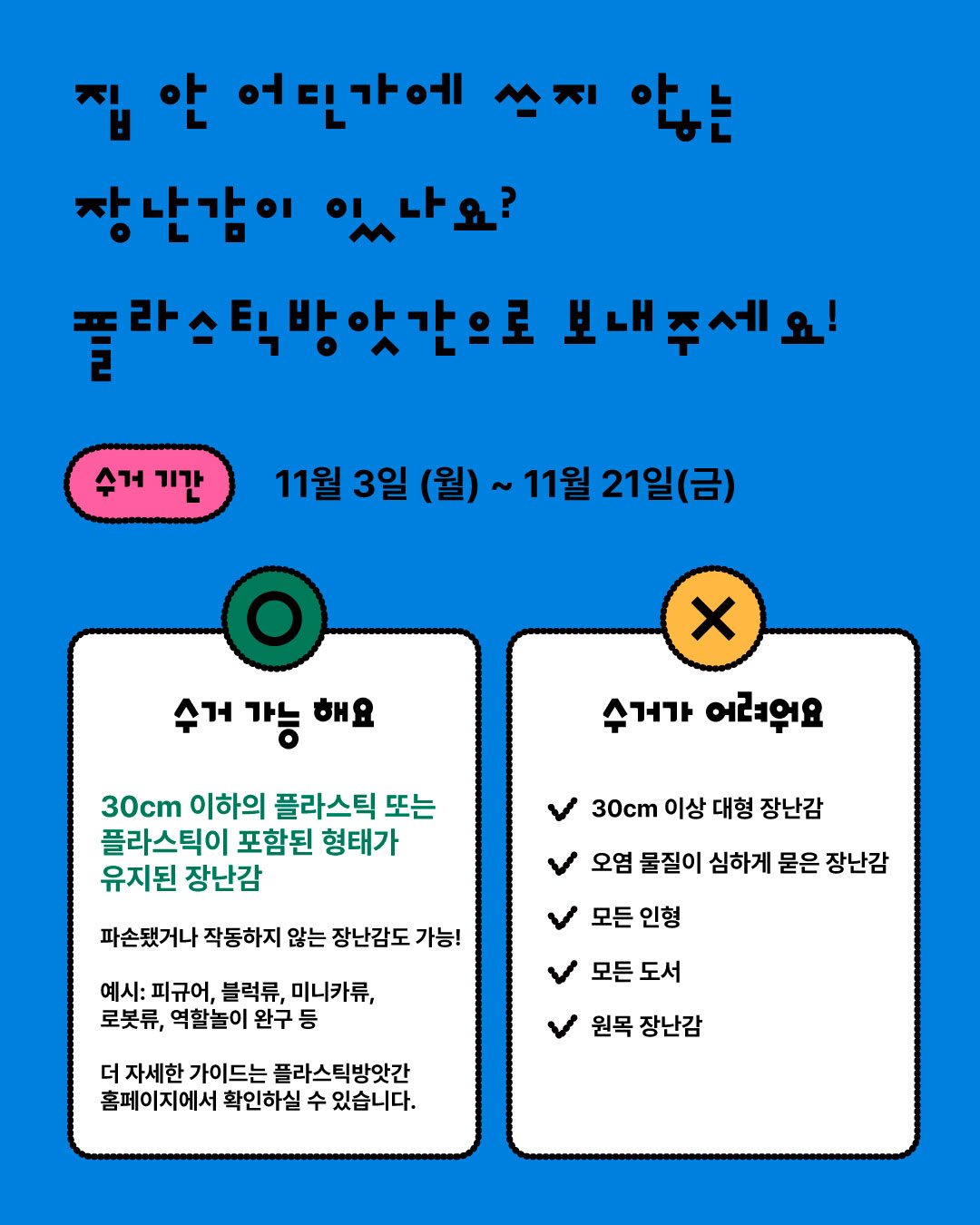 🏠 집 안 어딘가에 쓰지 않는 장난감이 있나요? 플라스틱방앗간으로 보내주세요!