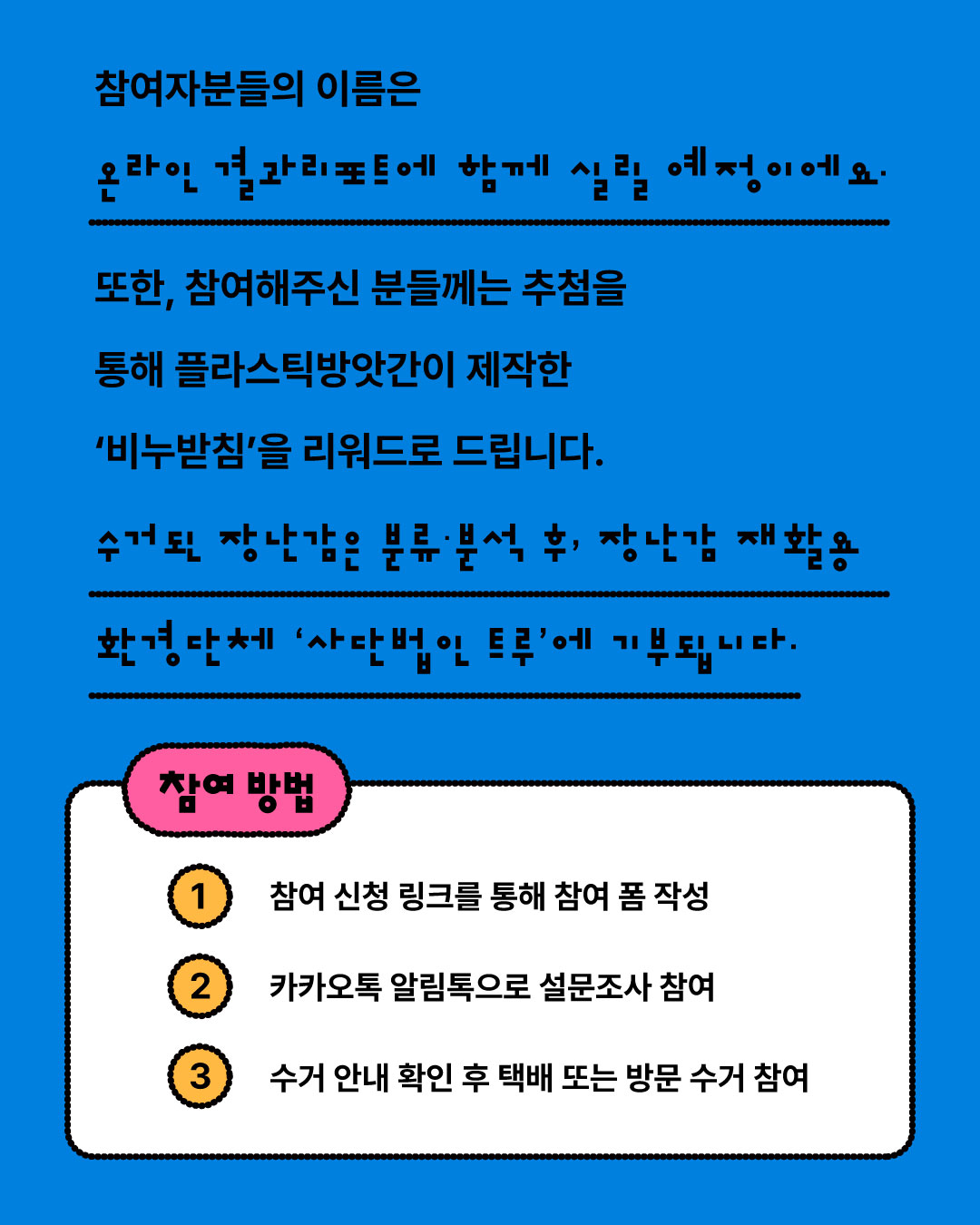 🎁 조사단에 참여해주신 분들께는 추첨을 통해 플라스틱방앗간 제작 ‘비누받침’ 리워드로 드려요!