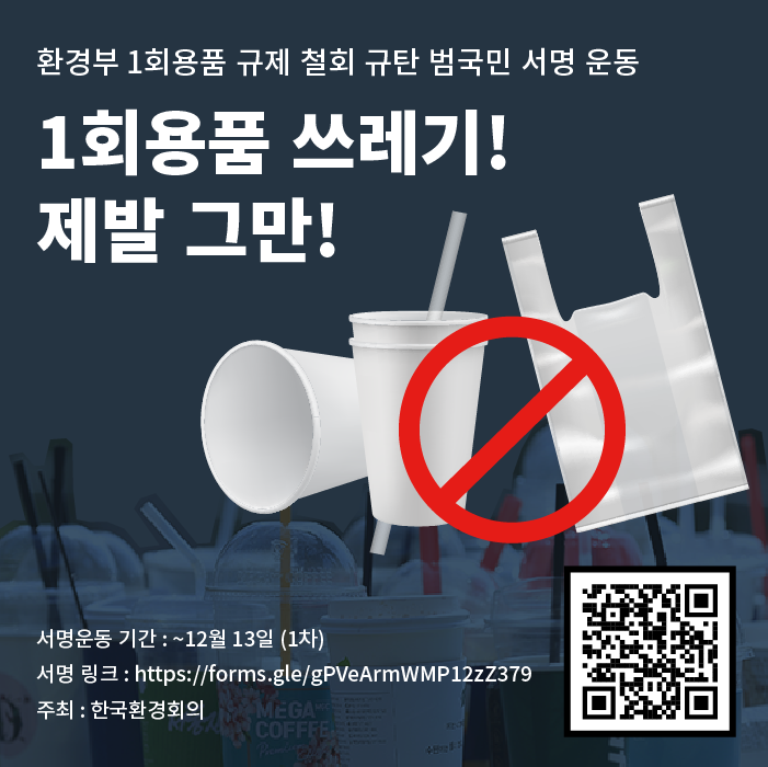 [모집·진행 종료]1회용품 규제 철회 규탄 서명에 함께해주세요🙌