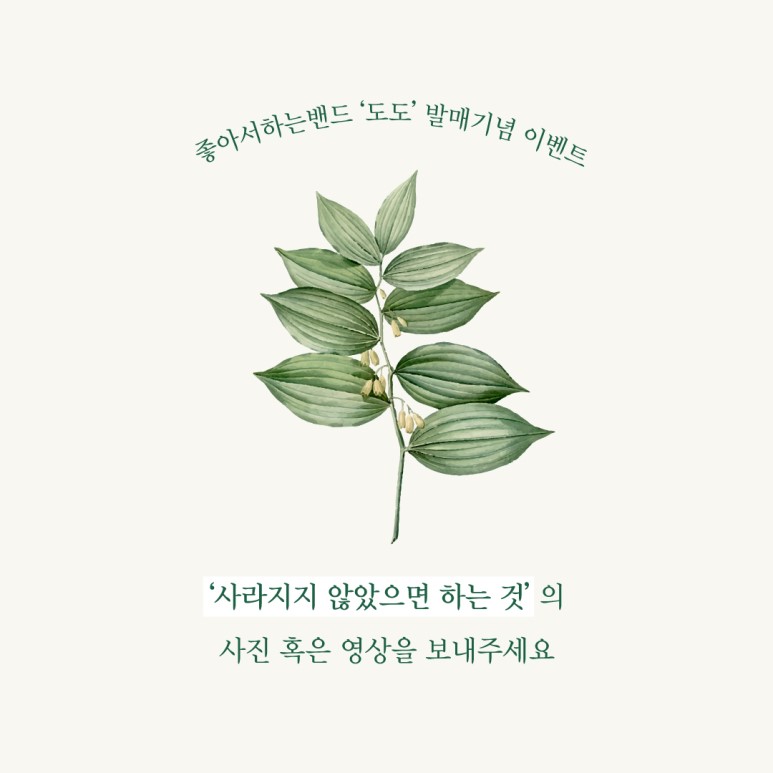 인스타그램에도 #좋아서하는밴드 #도도 #그린뮤직챌린지 #들숲날숨 #서울환경연합 해시태그와 함께 업로드한다면 당첨 확률 UP!