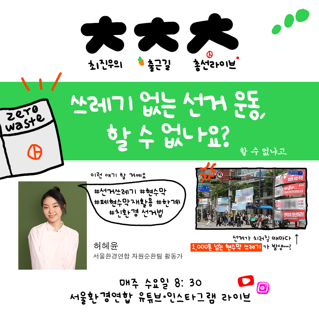 [모집·진행 종료]2024 총선, 환경정책 일러드립니다👉 최진우의 총선 라이브 ㉩㉩㉩ | 8화. 쓰레기 없는 선거운동, 할 수 없을까? (할 수 없냐고.)