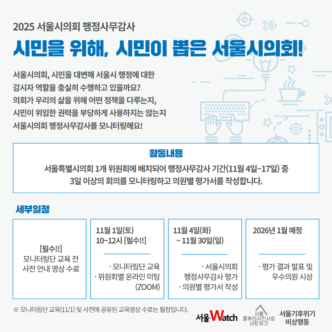 [모집·진행 종료]2025 시민의정감시단 모집 | 서울시의회 행정사무감사 모니터링
