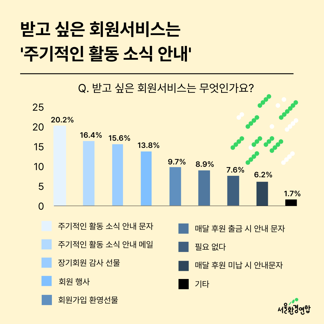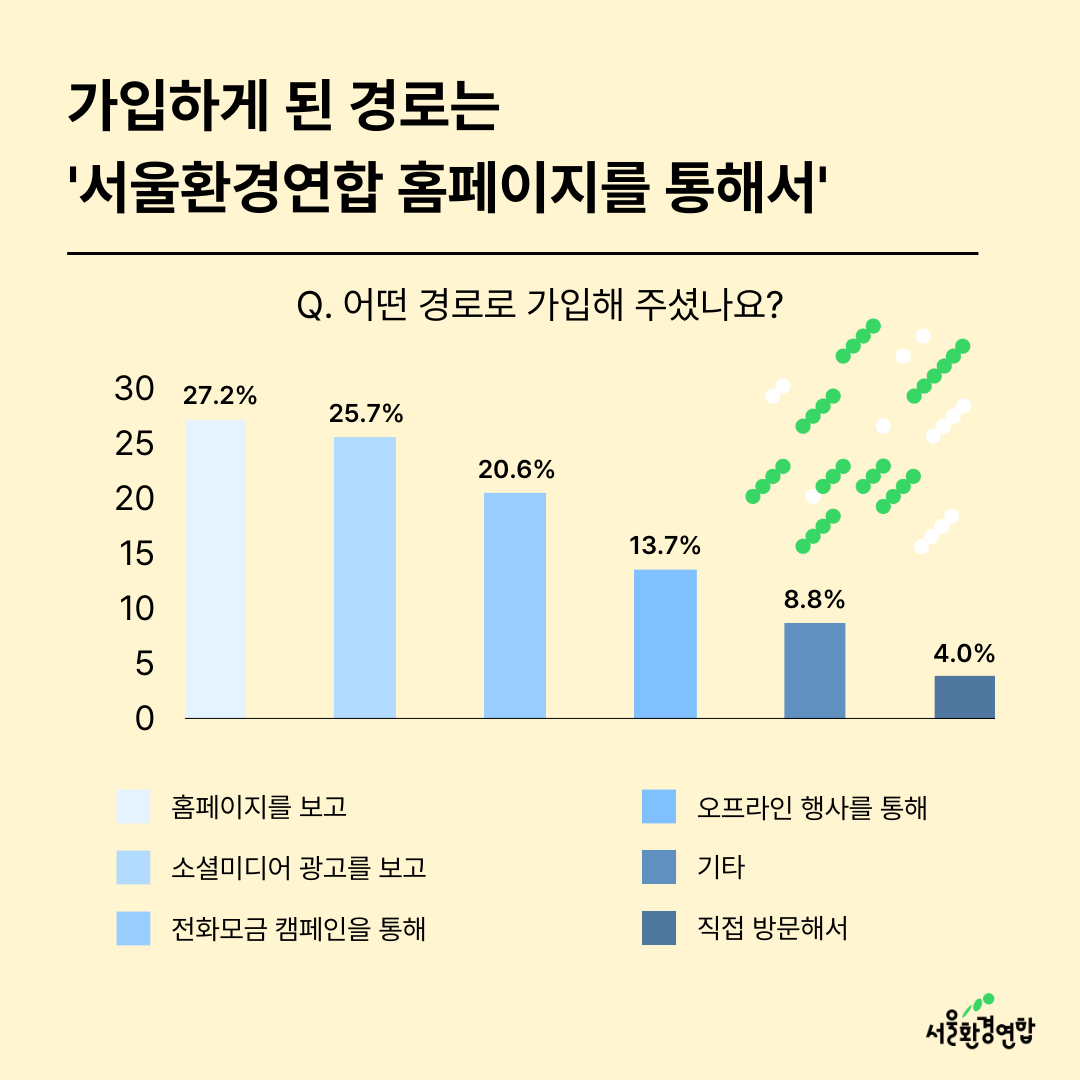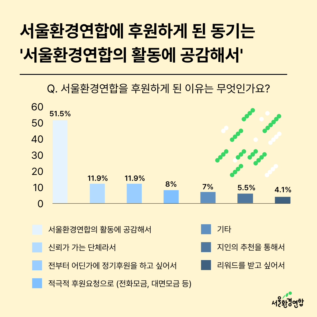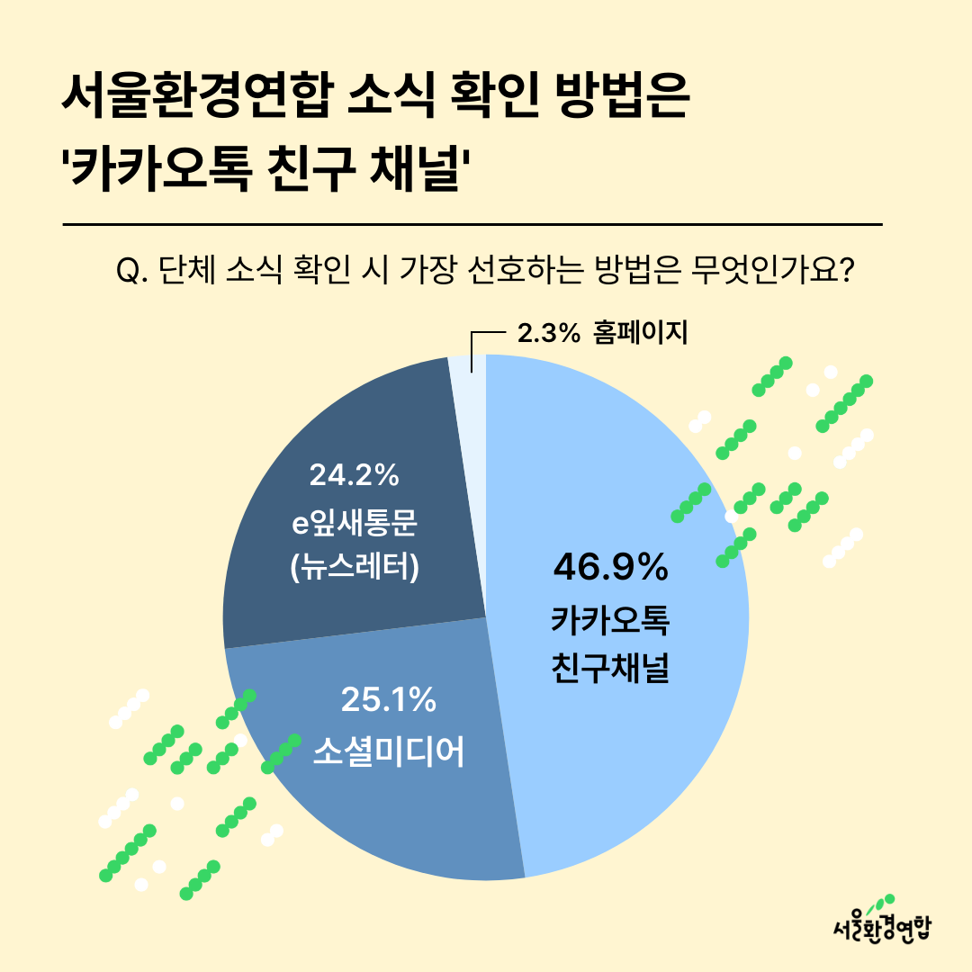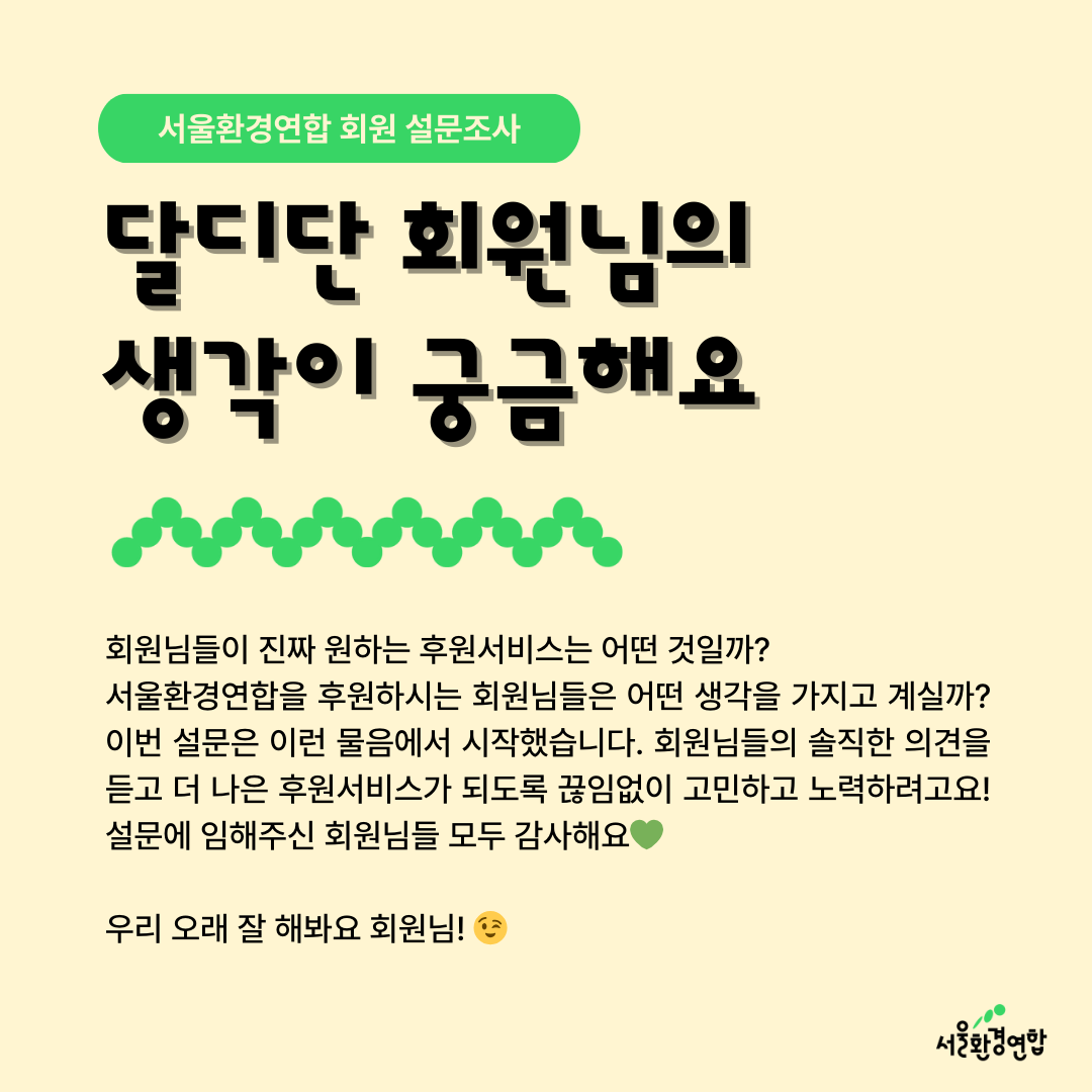 💚다시 한번 설문에 참여해 주신 회원님들께 깊은 감사를 드리며, 더욱 소통하고 회원님들의 의견에 귀 기울이는 서울환경연합이 되겠습니다.💜