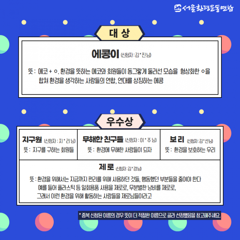 서울환경연합 회원 이름이 드디어 정해졌습니다