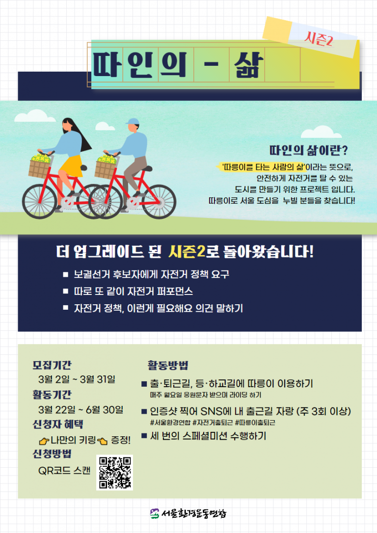 [모집·진행 종료]시즌 2로 돌아온 ‘따인의 삶’ 따릉이로 서울을 누비실 분 찾습니다!